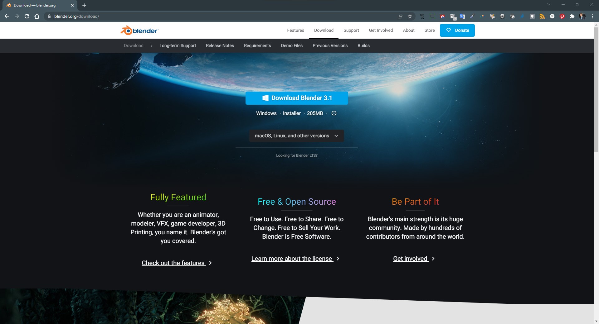 Empezamos esta entrada enfocada al proceso de descargar e instalar Blender. lo primero que tenemos que hacer es entrar a https://www.blender.org/ y el aspecto del sitio es este.