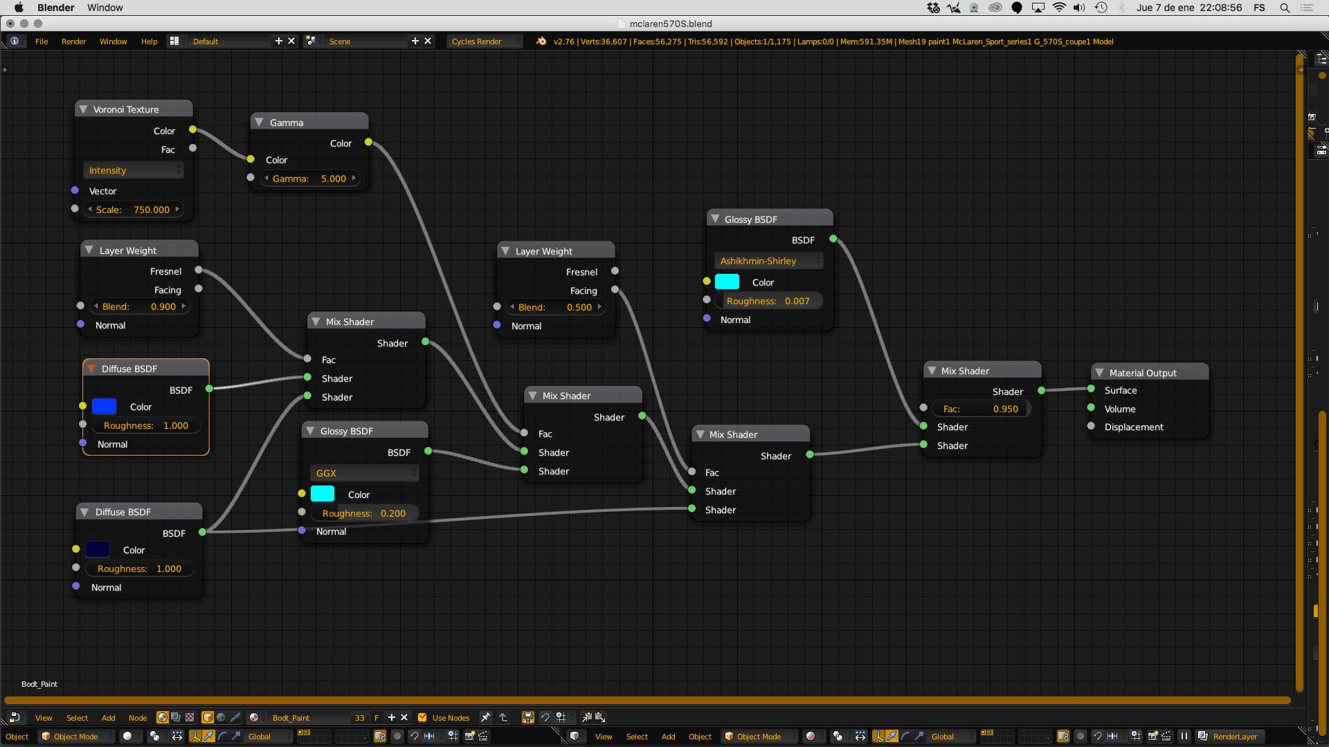 Dejo una captura de pantalla con los parametros para un tipo de CarPaint Shader en Blender y con Cycles