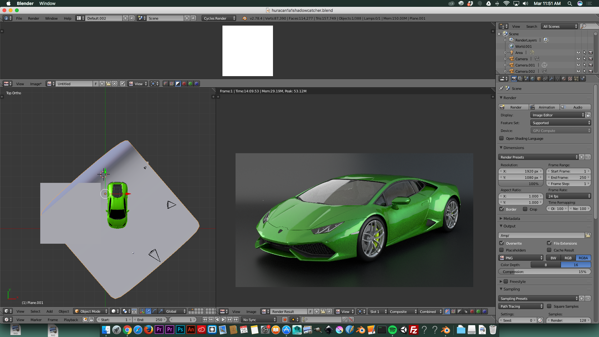 He estado probando distintas configuraciones de iluminación del Huracán además de generar una entrada ya aquí en el blog, acabo de hacer un nuevo render pero ahora con una configuración tipo estudio, dejo el render y alguanas caoturas de pantalla.