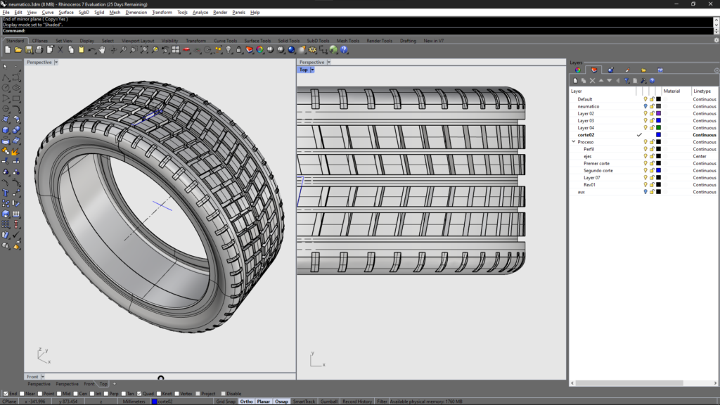 Para el proceso de la creación de un neumático en Rhino empezamos creando la mitad del perfil