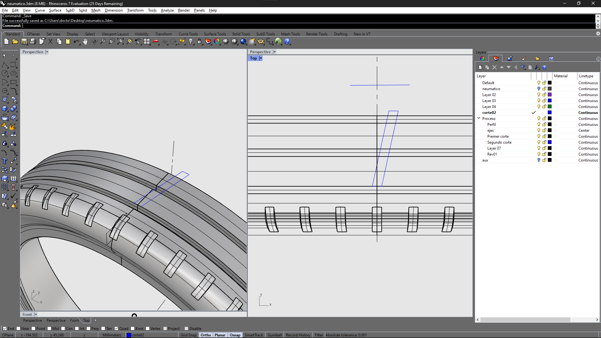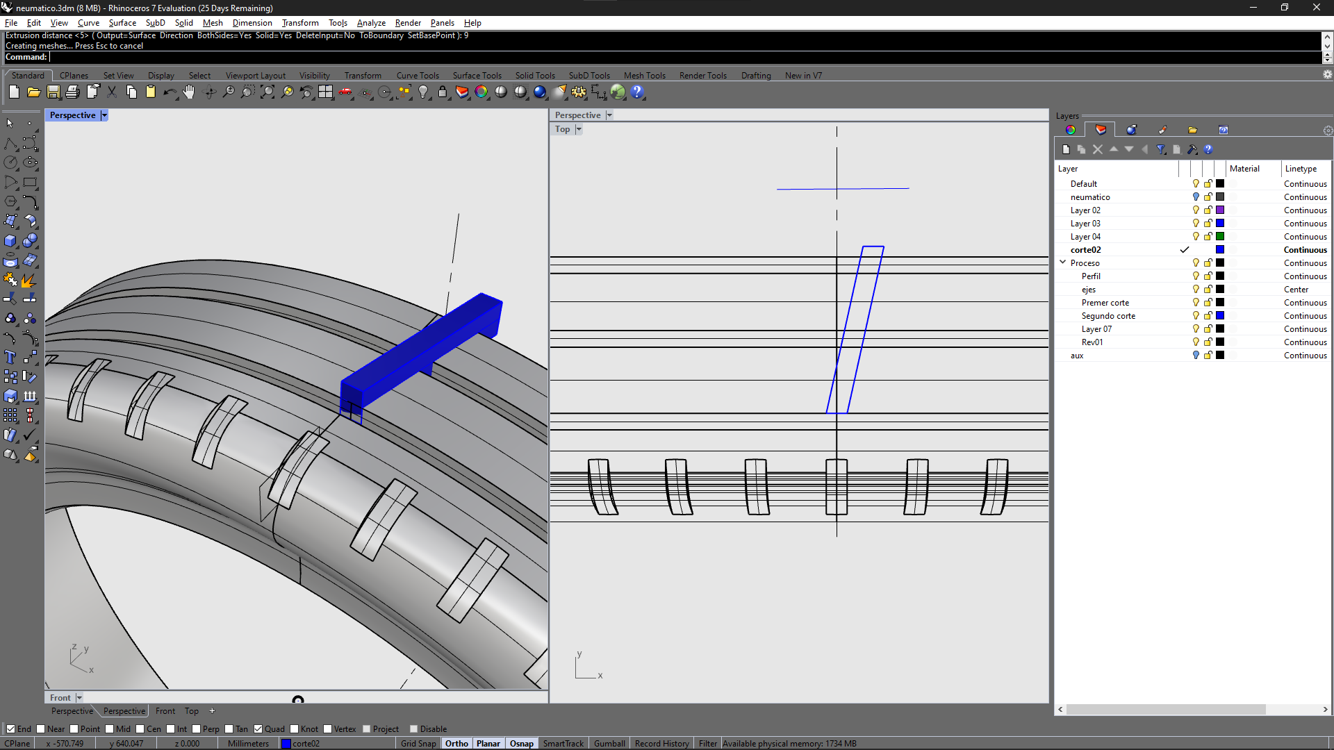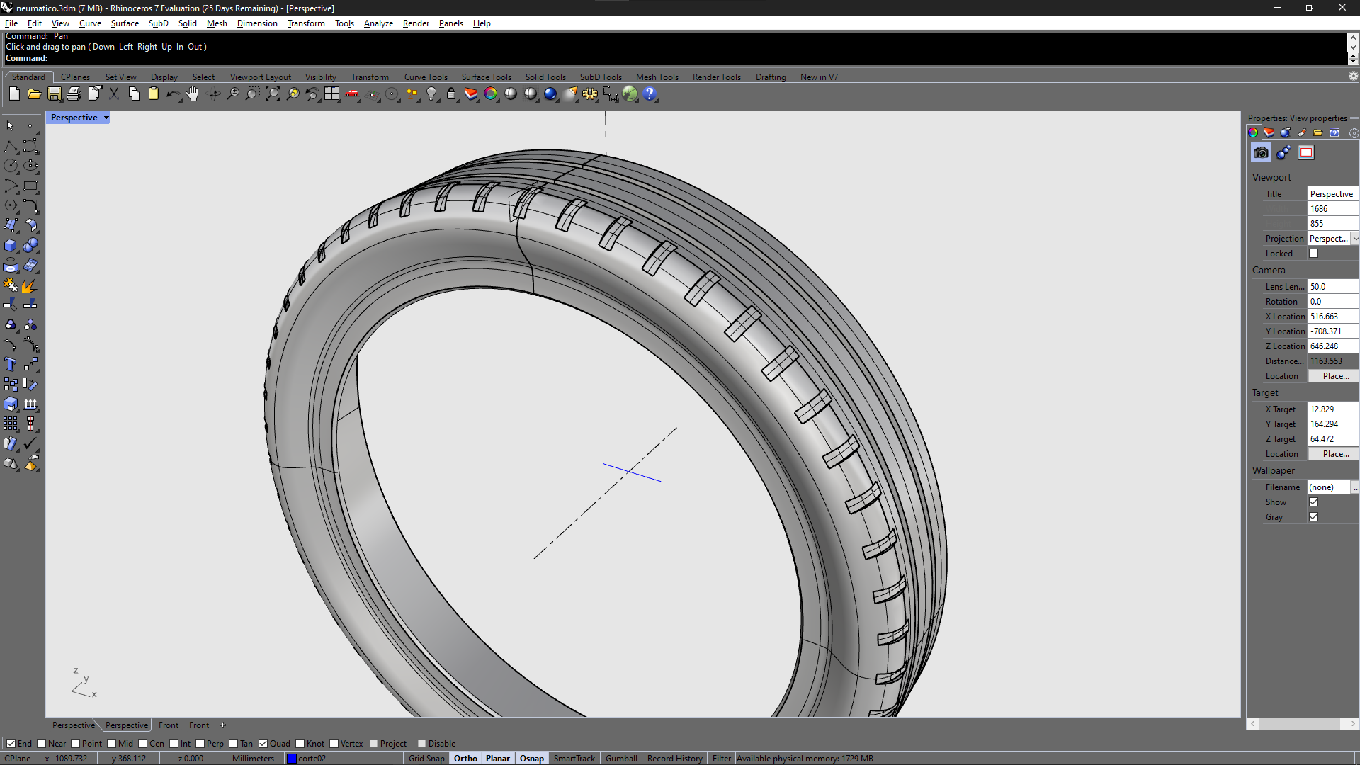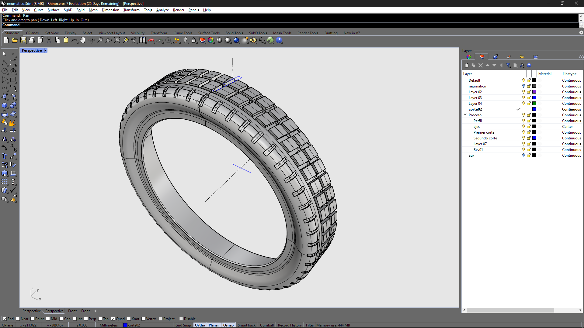 Para el proceso de la creación de un neumático en Rhino empezamos creando la mitad del perfil