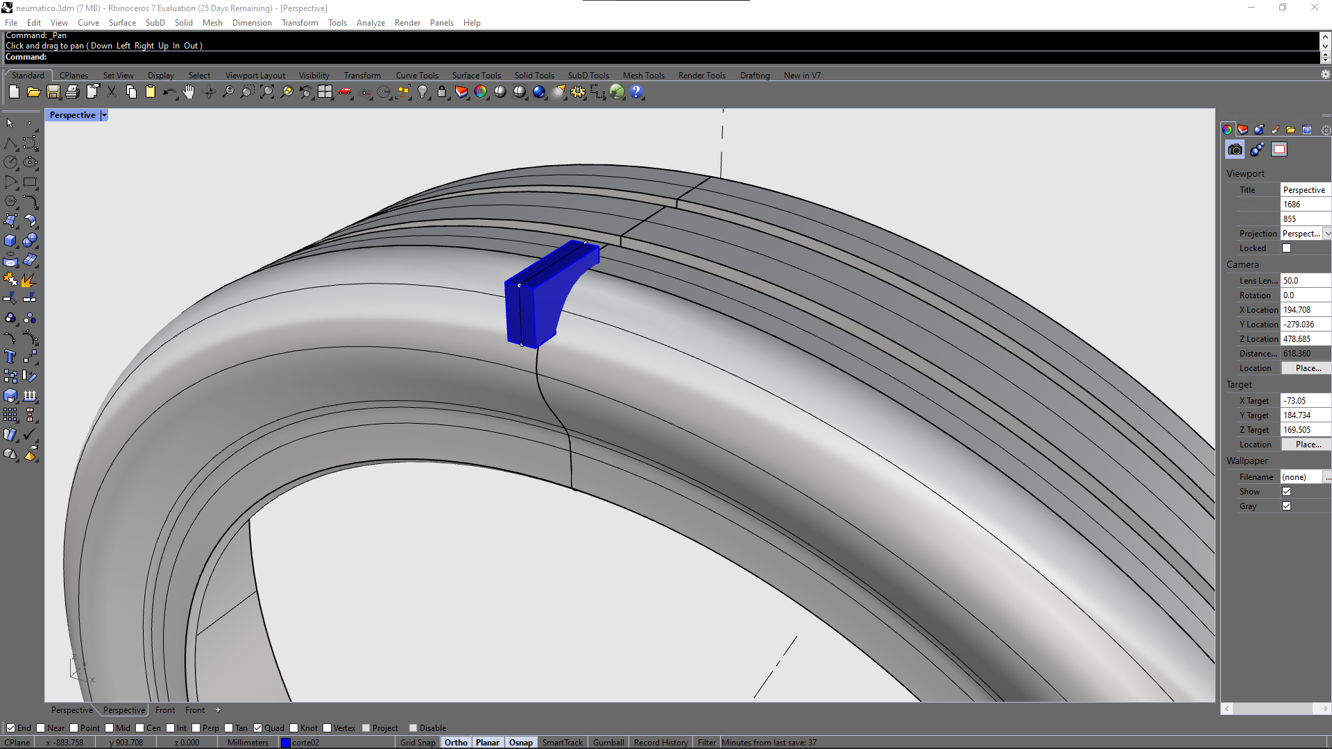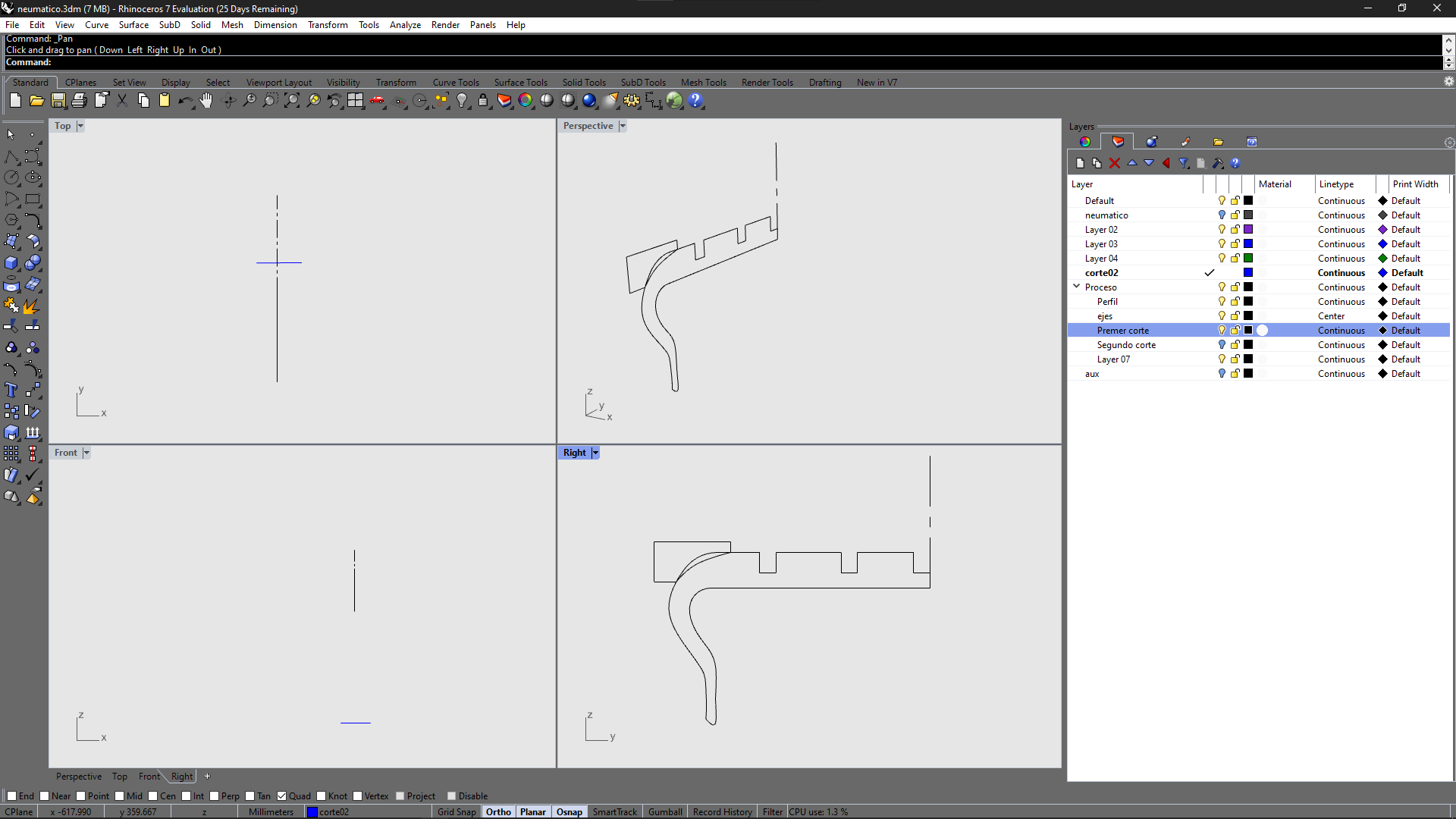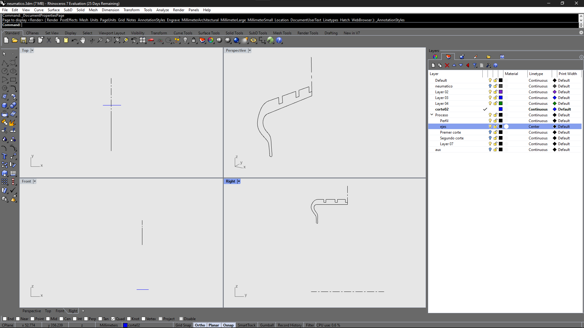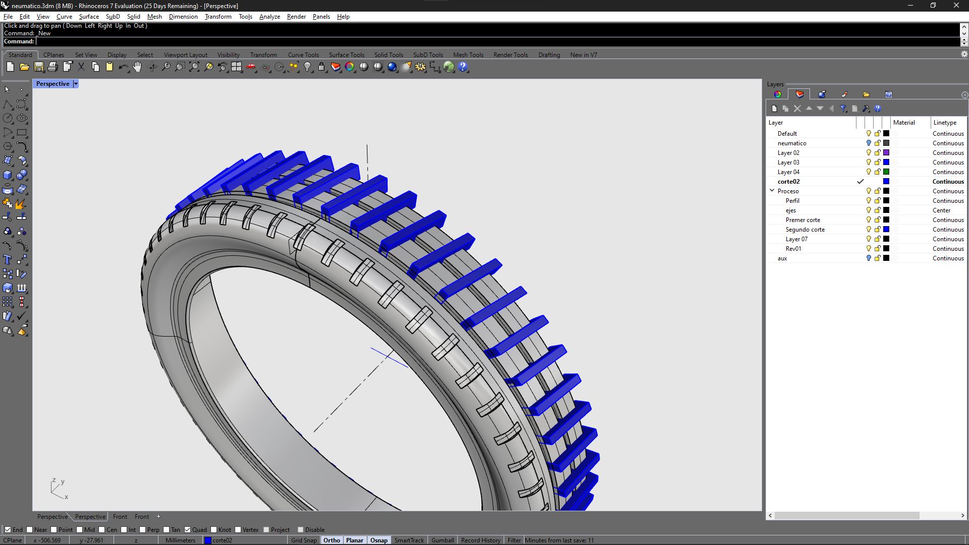 Para el proceso de la creación de un neumático en Rhino empezamos creando la mitad del perfil