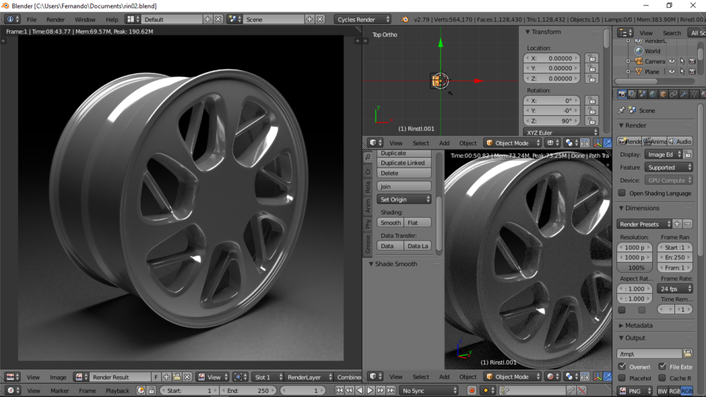 Pruebas del desarrollo de un rin, modelado en Rhino, y renderizado en Blender rin en Rhino Y el resultado con Blender es el siguiente y aprovechando, probé el nuevo Blender 2.8 Blender 2.8 Categorías: 3D Etiquetas: BlenderRhino 0 comentarios Deja una respuesta Cancelar la respuestaTu dirección de correo electrónico no será publicada. Los campos obligatorios están marcados con * Nombre * Correo electrónico * Web ¿En qué estás pensando? Guarda mi nombre, correo electrónico y web en este navegador para la próxima vez que comente.