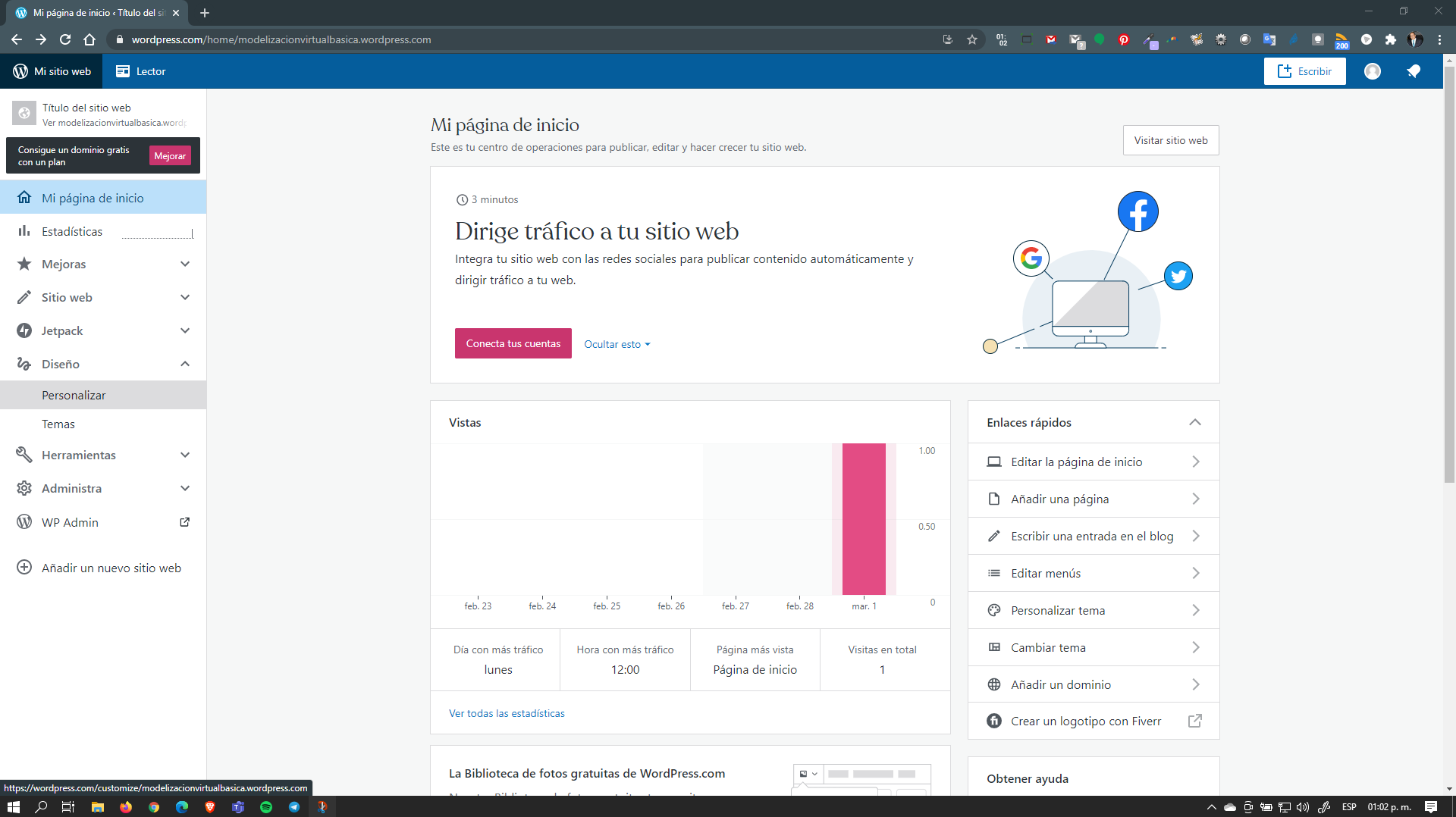 Estando en el área de administración tenemos que localizar en la parte de diseño la sección de personalizar que se encuentra en el lado izquierdo.