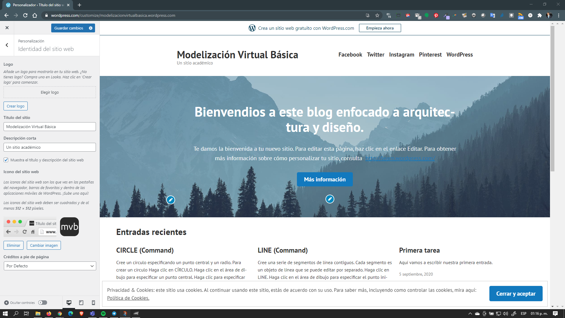 WordPress es una herramienta que nos puede servir para promocionar o mostrar nuestros trabajos sin necesidad de depender de una red social y podemos lograr un aspecto muy pulido, en esta entrada estaré trabajando la personalización de un sitio ficticio, y que me servirá para personalizarlo.