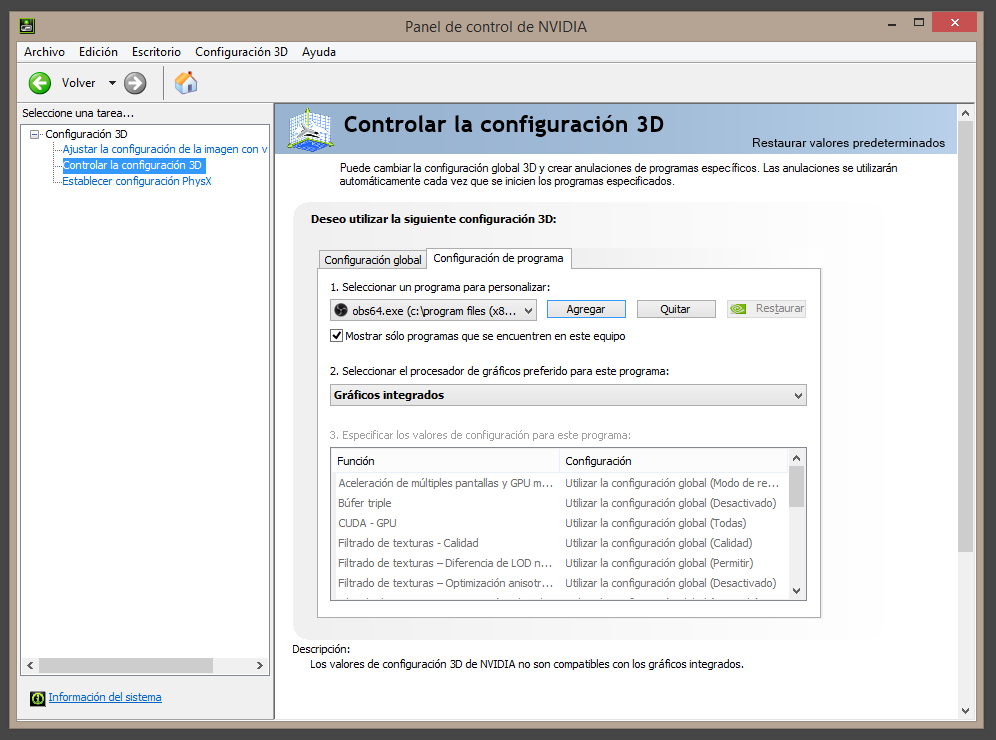 Eñ siguente paso es intalar el OBS que quedaba en pantalla negra y por lo tanto habia que hacer cambio para la tarjeta gráfica,